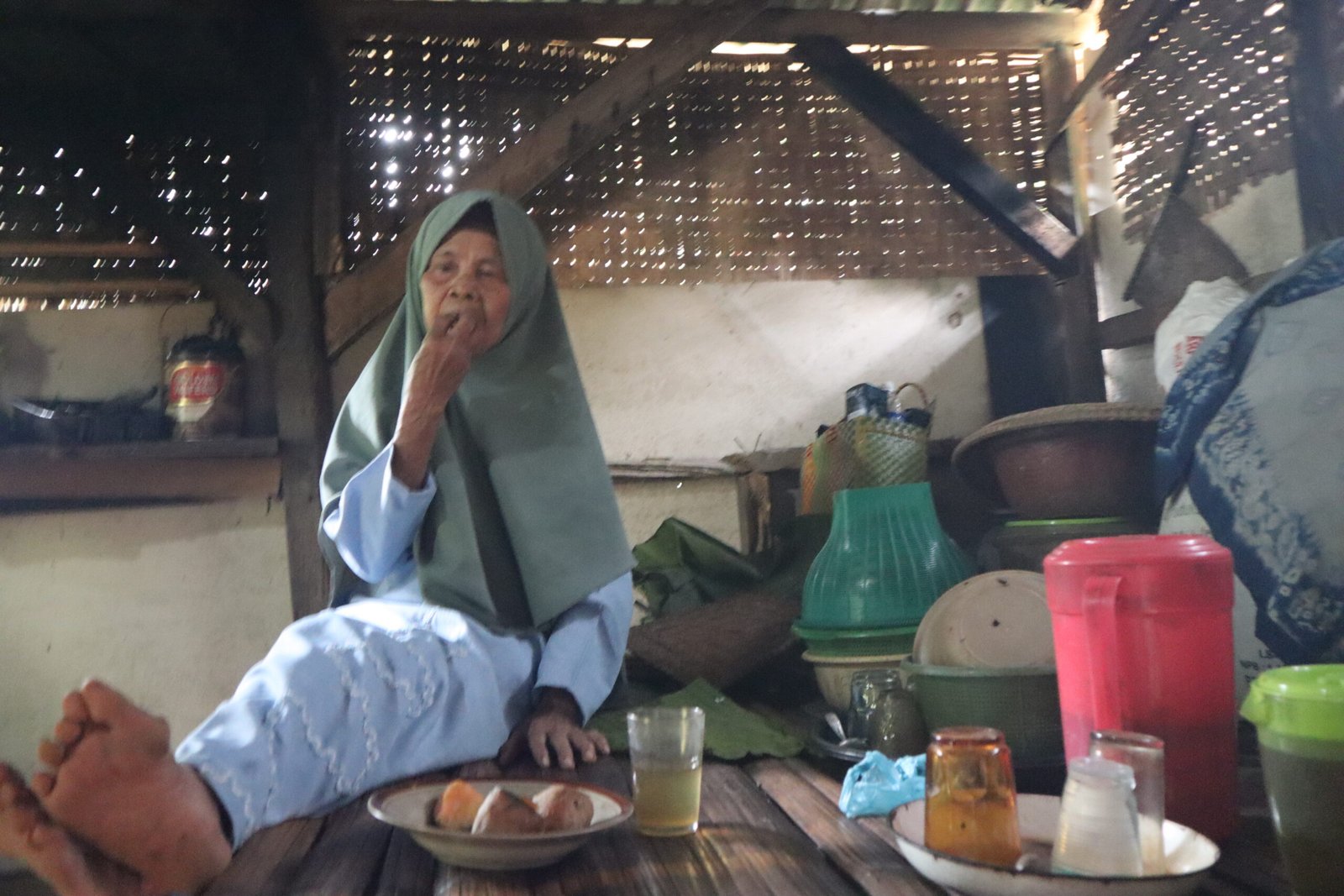 Di balik tawa ramah dan tubuh yang mulai rapuh, Nek Eja menyimpan kisah hidup yang begitu mengharukan. Di usianya yang sudah lanjut, ia tinggal di rumah seorang diri, rumah yang bisa disebut kurang layak. Bangunan jaman dahulu dengan dinding reyot, atap bocor, serta lantai tanah menjadi saksi kehidupan Nek Eja hari demi harinya.