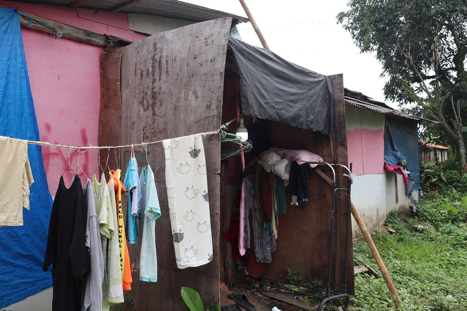 Kondisi makin diperparah karena ia dan kedua anaknya tinggal di rumah yang tak layak huni yang hanya beratapkan seng baja ringan dan berlindung di bawah pohon agar terlalu panas, itu pun bukan tanah miliknya. Tanah yang ia tinggali sekarang ini milik keluarga suaminya. rasa was was itu selalu ada di setiap langkah Bu Hayanih saat memulung barang rongsok.