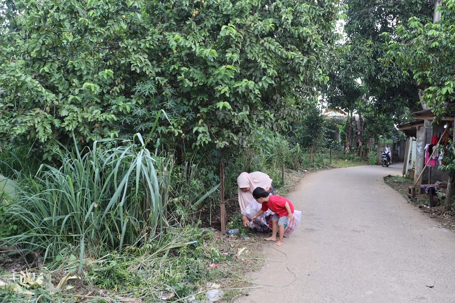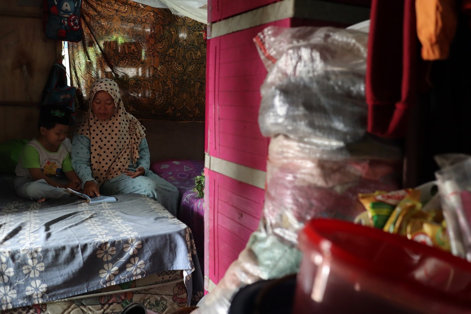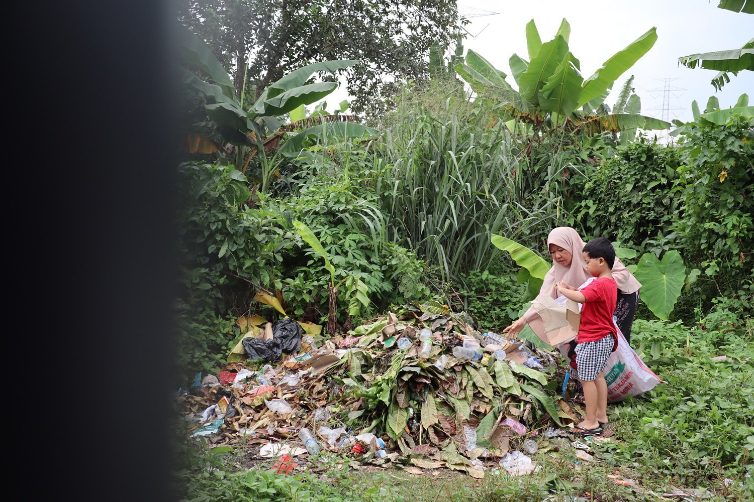“Siapa yang tega sih mas bawa anak jalan kaki keliling keliling jauh mencari barang rongsok, panas ya kepanasan hujan ya kehujanan, tapi kalau Hapis di tinggal di rumah siapa yang jaga?, kakaknya kan sekolah mas. Ucap Bu Hayanih sambil melirih kepada kami