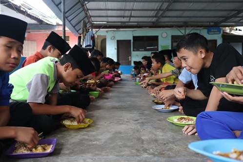 Alhamdulillah, kebahagiaan terpancar di wajah anak-anak yatim saat duduk bersama, menikmati hidangan penuh berkah. Semua ini tak lepas dari kebaikan para sahabat dermawan yang telah ikhlas dan menyisihkan rezekinya untuk berbagi.