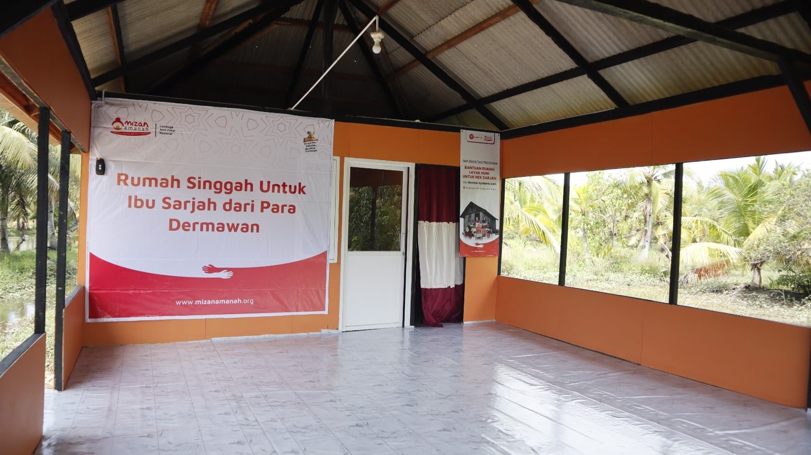 Harapan itu akhirnya terwujud melalui program bantuan pembangunan rumah dari Mizan Amanah. Kini, rumah baru Nek Sarjah telah berdiri kokoh dan layak huni—dilengkapi dengan peralatan dapur, kompor, gas, kasur, bantal, pakaian, bahkan rice cooker.