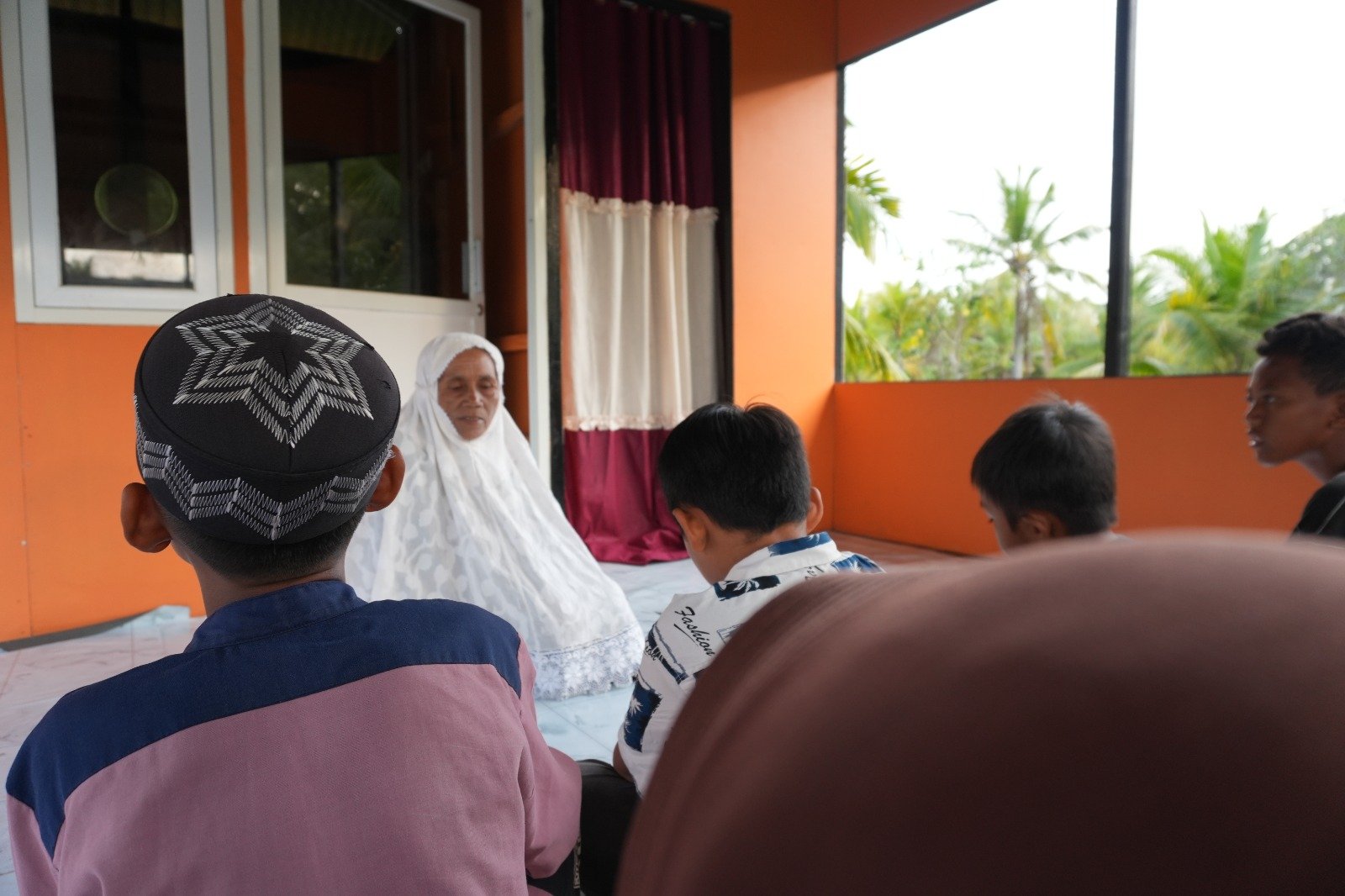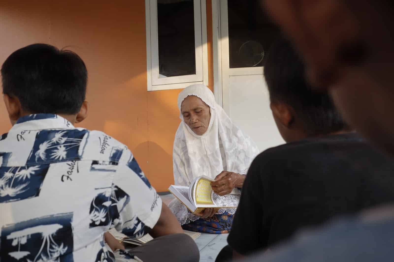 “Bukan saya saja yang merasakan manfaatnya,” tutur Nek Sarjah lembut, “anak-anak di sini juga senang... mereka belajar, mengaji, dan semoga jadi anak-anak yang pintar, sukses dunia dan akhirat.”